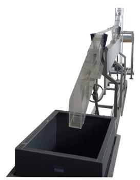 2、實(shí)驗(yàn)槽道:全長(zhǎng)11m有機(jī)玻璃雙變坡水槽,前后段有兩個(gè)可根據(jù)需要調(diào)節(jié)不同坡度的活動(dòng)軸裝置。