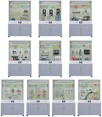 5、柜頂部裝有照明日光燈,柜背設(shè)有對(duì)開(kāi)門(mén),有利維護(hù)設(shè)備和方便維修。柜下部設(shè)有柜箱,方便存放單個(gè)模型、實(shí)驗(yàn)箱及相關(guān)實(shí)驗(yàn)文檔。柜底裝有萬(wàn)向輪,方便移動(dòng),符合人機(jī)工程要求。
