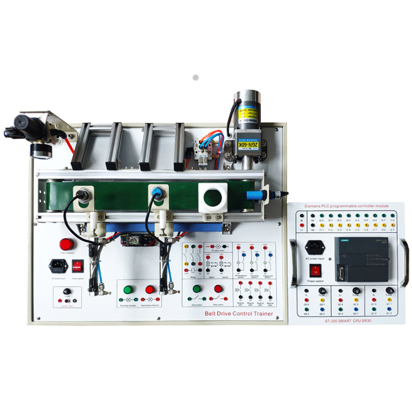該裝置采用臺式結(jié)構(gòu),配有 PLC、傳感器(光電式、電感式、顏色、磁感應(yīng)式)、旋轉(zhuǎn)編碼器、單相交流電動(dòng)機(jī)、輸送帶、進(jìn) 口電磁閥,減壓閥,空氣濾清器,氣壓指示表等。是一套模擬工業(yè)自動(dòng)化生產(chǎn)物料分揀過程的微縮模型,可以實(shí)現(xiàn)不同材料 的自動(dòng)分選和歸類, 并由上位計(jì)算機(jī)監(jiān)控。