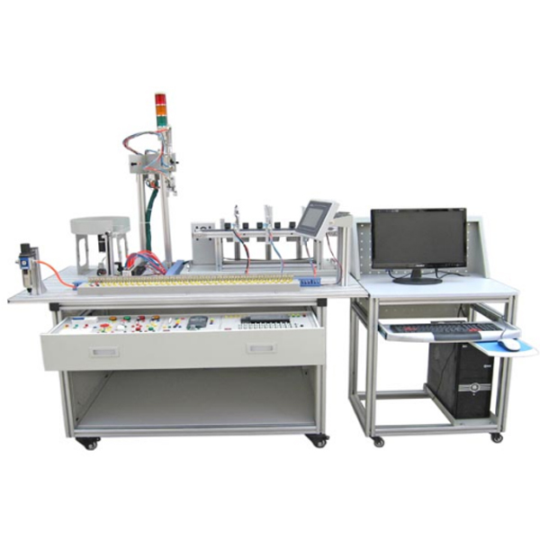 1.機(jī)電設(shè)備模型或?qū)嵨?可演示; 一、產(chǎn)品概述 實(shí)訓(xùn)裝置由由鋁合金導(dǎo)軌式實(shí)訓(xùn)臺(tái)、典型的機(jī)電一體化設(shè)備的機(jī)械部件、PLC模塊、變頻器模塊、按鈕模塊、電源模塊、模擬生產(chǎn)設(shè)備實(shí)訓(xùn)模塊、接線端子排和各種傳感器、計(jì)算機(jī)等組成。整體結(jié)構(gòu)采用開放式和拆裝式,實(shí)訓(xùn)裝置用于機(jī)械部件組裝,可根據(jù)現(xiàn)有的機(jī)械部件組裝生產(chǎn)設(shè)備,也可添加機(jī)械部件組裝其他生產(chǎn)設(shè)備,使整個(gè)裝置能夠靈活的按教學(xué)或競(jìng)賽要求組裝具有生產(chǎn)功能的機(jī)電一體化設(shè)備。模塊采用標(biāo)準(zhǔn)結(jié)構(gòu)和抽屜式模塊放置架,互換性強(qiáng);按具有生產(chǎn)性功能和整合學(xué)習(xí)功能的原則確定模塊內(nèi)容,使教學(xué)或競(jìng)賽時(shí)可方便的選擇需要的模塊。設(shè)備需符合競(jìng)賽所要求,同時(shí)還要求具有可拓展功能,可以組成更加大型的生產(chǎn)模擬系統(tǒng),以配合各個(gè)用戶學(xué)校不同層次,不同專業(yè)的教學(xué)及培訓(xùn)要求。 二、技術(shù)參數(shù) 1. 交流電源:三相五線 AC 380V±10% 50 Hz(或單相三線220v) 2. 溫度:-10~40 ℃;環(huán)境濕度:≤90%(25℃); 3. 外形尺寸:長(zhǎng)×寬×高:約1200×800×1500 mm; 4. 整機(jī)功耗:≤1.5 kW; 5. 安全保護(hù)措施:具有接地保護(hù)、漏電保護(hù)功能,安全性符合相關(guān)的國(guó)家標(biāo)準(zhǔn)。采用高絕緣的安全型插座及帶絕緣護(hù)套的高強(qiáng)度安全型實(shí)驗(yàn)導(dǎo)線。 三、設(shè)備結(jié)構(gòu): 1.鋁合金導(dǎo)軌式實(shí)訓(xùn)臺(tái):可以安裝送料機(jī)構(gòu)、機(jī)械手、傳輸分揀機(jī)構(gòu)。實(shí)訓(xùn)模塊及PLC主機(jī)等可以放置在拉出式的支架上。 2.觸摸屏:7寸真彩工業(yè)級(jí)、模塊材料要求:高強(qiáng)度塑料外殼、重量輕,面板是鐵質(zhì)噴塑板。 3.PLC模塊及變頻器模塊:PLC 采用24個(gè)數(shù)字量輸入,24個(gè)數(shù)字量輸出主機(jī);變頻器:三菱 0.75KW;面板是鋁塑板。 4.電源模塊:三相電源總開關(guān)(帶漏電和短路保護(hù))1個(gè),熔斷器3只,單相電源插座2個(gè),安全插座5個(gè); 5.按鈕模塊:24 V/6 A、12 V/2 A各一組;急停按鈕1只,轉(zhuǎn)換開關(guān)2只,蜂鳴器1只,復(fù)位按鈕黃、綠、紅各1只,自鎖按鈕黃、綠、紅各1只,24V指示燈黃、綠、紅各2只; 6.一體化接線排:接線排殼體上兩側(cè)相對(duì)設(shè)置有一初級(jí)接線區(qū)(接線端子)和一次級(jí)接線區(qū)(安全插座);接線端子與對(duì)應(yīng)的安全插座通過(guò)導(dǎo)電彈性件連接;接線排殼體邊緣卷折,設(shè)有固定用的螺孔,可以固定在實(shí)訓(xùn)桌上。 7.上料機(jī)構(gòu):上料機(jī)構(gòu)1件,直流電機(jī)1只、光電傳感器1只,警示燈1只,主要完成將工件庫(kù)中的工件依次推出。 2.機(jī)械手模型 氣動(dòng)機(jī)械手裝置:四自由度氣動(dòng)機(jī)械手;氣動(dòng)手臂兩側(cè)裝有2個(gè)限位擋板,擋板上裝有電感傳感器、緩沖閥,進(jìn)行對(duì)手臂的旋轉(zhuǎn)限位。整個(gè)搬運(yùn)機(jī)構(gòu)能完成四個(gè)自由度動(dòng)作,手臂伸縮、手臂旋轉(zhuǎn)、手爪上下、手爪松緊。 3.自動(dòng)線模型 物料分揀裝置:傳送帶通過(guò)三相異步電動(dòng)機(jī)驅(qū)動(dòng),在傳送帶端點(diǎn)處設(shè)計(jì)有落料口,通過(guò)光電傳感器檢測(cè)物料;傳送帶上裝有三個(gè)出料槽,對(duì)應(yīng)位置有電感傳感器、光纖傳感器等,同時(shí)正對(duì)料槽位置裝有推料氣缸,共計(jì)三個(gè)氣缸。傳送帶采用可拆卸的鋁合金支架。 整體可實(shí)訓(xùn)項(xiàng)目: 1.氣動(dòng)系統(tǒng)的安裝與調(diào)試 (1)氣動(dòng)方向控制回路的安裝 (2)氣動(dòng)速度控制回路的安裝 (3)氣動(dòng)順序控制回路的安裝 (4)氣動(dòng)機(jī)械手的安裝 (5)氣動(dòng)系統(tǒng)氣路的連接 (6)磁性開關(guān)的位置調(diào)整 (7)氣動(dòng)系統(tǒng)調(diào)試 (8)擺動(dòng)控制回路的安裝 2.變頻器的安裝與調(diào)試 (1)變頻器與交流電機(jī)主電路的連接 (2)變頻器面板的參數(shù)設(shè)置與操作 (3)變頻器面板控制交流電機(jī)調(diào)速 (4)通過(guò)變頻器外部端子控制電機(jī)啟停 3.機(jī)電設(shè)備的安裝與調(diào)試 (1)傳動(dòng)裝置同軸度的調(diào)整 (2)皮帶輸送機(jī)的安裝與調(diào)整 (3)搬運(yùn)機(jī)械手設(shè)備安裝與調(diào)試 (4)物件分揀設(shè)備的安裝與調(diào)試 (5)送料設(shè)備的安裝與調(diào)試 (6)自動(dòng)生產(chǎn)線設(shè)備安裝與調(diào)試 4.電氣控制電路的安裝與PLC編程 (1)電動(dòng)機(jī)正反轉(zhuǎn)控制電路的連接與程序編寫 (2)電動(dòng)機(jī)調(diào)速控制電路的連接與程序編寫 (3)皮帶輸送檢測(cè)程序編寫 (4)氣動(dòng)順序動(dòng)作控制程序編寫 (5)氣動(dòng)機(jī)械手控制程序編寫 (6)機(jī)電一體化設(shè)備控制程序編寫 (7)自動(dòng)生產(chǎn)線控制程序編寫 5.自動(dòng)控制系統(tǒng)的安裝與調(diào)試 (1)多種傳感器的安裝與調(diào)試 (2)皮帶輸送檢測(cè)的自動(dòng)控制 (3)機(jī)械手的自動(dòng)控制 (4)機(jī)電一體化的自動(dòng)控制 (5)PLC控制系統(tǒng)的安裝與調(diào)試 (6)自動(dòng)生產(chǎn)線