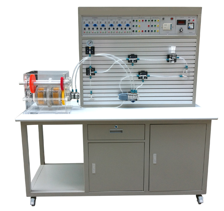 透明濕式離合器變速箱與液壓元件外殼采用透明有機玻璃加工而成,油路采用防漏透明油管,能清晰直觀的觀察到元件內(nèi)部結(jié)構(gòu)和液壓流動過程。真實演示濕式離合器變速箱摩擦片分離、結(jié)合、換擋、變速動作??砷_設(shè)液壓傳動演示、兩種控制方式PLC控制與繼電器控制的基本回路。適合大中專院校機電類專業(yè)“液壓傳動”、“液壓與氣壓傳動”等課程的教學實驗需要。