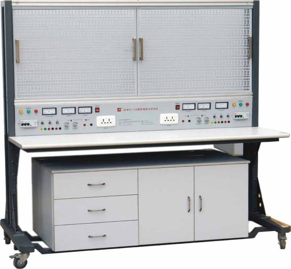 本實訓(xùn)臺由實訓(xùn)屏(內(nèi)置電源)、實訓(xùn)桌、實訓(xùn)儲物柜三大部分組成。以30mm×30mm成型方鋼作為設(shè)備主要框架材料;實訓(xùn)屏、地盤采用焊接連接、關(guān)鍵部位采用三角筋用內(nèi)六角螺釘加固連接,表面經(jīng)高溫噴塑處理,美觀大方且有效起到防銹絕緣的作用;由兩條35mm×35mm鋁合金型材及滑槽組成網(wǎng)孔板固定機構(gòu);固定機構(gòu)的下方是鐵制雙工位電源箱,每工位電源箱的布局依次為電源保護裝置、電源指示裝置、電源輸出;實訓(xùn)桌桌面采用25mm麻灰色高密度層壓板封邊特制,有效提高絕緣等級;實驗桌底部裝有至少4個導(dǎo)向輪,方便實訓(xùn)臺架移動;