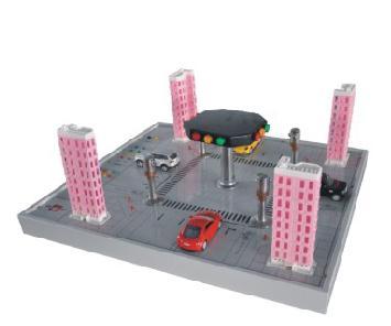 本企業(yè)設(shè)計(jì)開(kāi)發(fā)的模型為實(shí)際十字路口現(xiàn)況按比例微縮而成,主要由仿真實(shí)物建筑模型、車輛實(shí)物模型、道路模型及交通指揮燈等部件組成。有電源指示和控制、啟/停按鈕、手/自動(dòng)按鈕、行人呼叫按鈕、四方向紅/黃/綠燈點(diǎn)陣指示模塊(具有東西南北十二方向顯示)、四方向數(shù)碼倒計(jì)時(shí)顯示模塊,車輛行進(jìn)聲光指示(不同方向的車行進(jìn)時(shí)可用不同的聲音及指示燈進(jìn)行指示)等??刂破鞑捎?;三菱主機(jī)為FX1N-24MR 內(nèi)置開(kāi)關(guān)量I/O(14路開(kāi)關(guān)量輸入/10路數(shù)字量輸出)+FX2N-8EYR(8路數(shù)字量輸出)。選用的主機(jī)功能齊全,性能優(yōu)越。實(shí)訓(xùn)操作靈活方便,能滿足大中專院校、職業(yè)技術(shù)學(xué)校、職教中心可編程控制器技術(shù)的教學(xué)、課程設(shè)計(jì)和畢業(yè)設(shè)計(jì)。