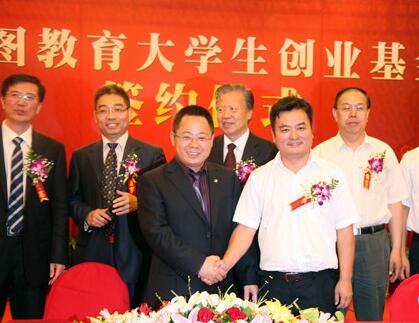 華圖教育大學(xué)生創(chuàng)業(yè)公益基金在京成立 易定宏與方偉簽約(攝影 中國網(wǎng)/馮竹)