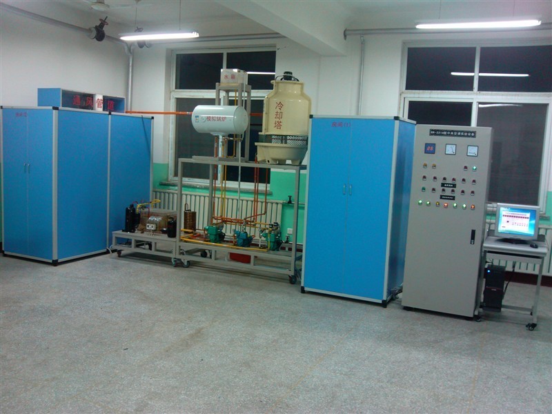 制冷機(jī)組、冷卻系統(tǒng)、冷凍系統(tǒng)、制熱系統(tǒng)、模擬客房、模擬大廳、電控柜、可編程控制器、壓力采集模塊、溫度采集模塊、數(shù)據(jù)采集點(diǎn)、PLC編程軟件、中央空調(diào)組態(tài)監(jiān)控軟件、計(jì)算機(jī)、小推車。