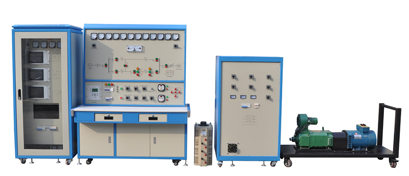該平臺由五部分組成:同步發(fā)電機組、機組控制柜、輸電線路及監(jiān)視保護屏、無窮大電力系統(tǒng)和阻抗負載。對風力發(fā)電并網(wǎng)過程中常用的自動裝置、監(jiān)控、電力系統(tǒng)運行、繼電保護等教學內(nèi)容進行操作、測試和試驗。裝置采用固定式結(jié)構(gòu)。