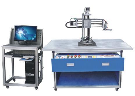 該實(shí)訓(xùn)裝置為坐標(biāo)式機(jī)械手,可完成機(jī)械手旋轉(zhuǎn)、手臂垂直上下、手臂水平移動(dòng),手爪旋轉(zhuǎn)四個(gè)自由度的位置精確控制。同時(shí)配置晶體管式PLC可編程控制器,用于對(duì)整個(gè)機(jī)械手進(jìn)行復(fù)雜地位置控制。該實(shí)訓(xùn)裝置的控制部分均采用標(biāo)準(zhǔn)式模塊設(shè)計(jì),可分為電源模塊、PLC模塊、系統(tǒng)控制模塊。包含了機(jī)電一體化專業(yè)中所涉及的諸如步進(jìn)電機(jī)驅(qū)動(dòng)、機(jī)械傳動(dòng)、氣動(dòng)、可編程控制器、傳感器、等多項(xiàng)技術(shù),給學(xué)生提供了一個(gè)綜合實(shí)訓(xùn)環(huán)境,使學(xué)生學(xué)過的諸多單科專業(yè)知識(shí)在這里得到全面認(rèn)識(shí)、綜合訓(xùn)練和相互提升。該實(shí)訓(xùn)裝置主要用于電氣、電工電子、自動(dòng)化控制、機(jī)電一體化專業(yè)崗位技能實(shí)訓(xùn)、考核,是各院校相關(guān)專業(yè)實(shí)訓(xùn)室建設(shè)中最佳設(shè)備選擇之一。