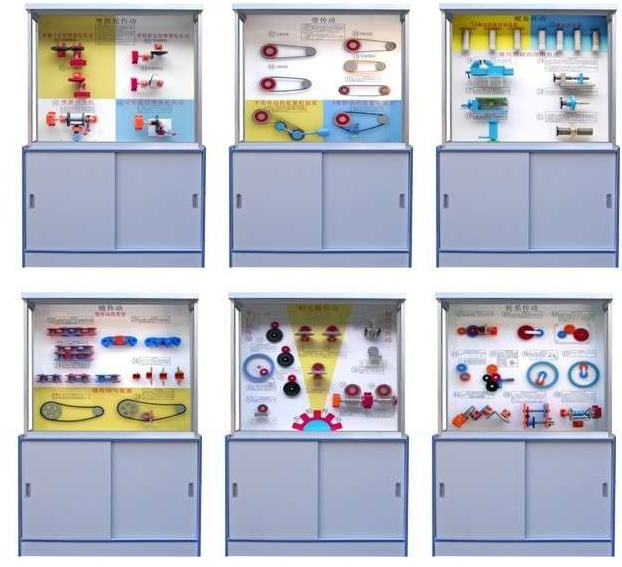 《機(jī)械傳動(dòng)》示教陳列柜共分十個(gè)柜,外型用鋁合金柜架,模型材料用各色有機(jī)玻璃和硬聚氯,板面附有PVC一次成型作并附有必要圖表和文件字說明,形象逼真,制作工藝美觀。使用本陳列柜能提高教學(xué)效果,節(jié)約學(xué)時(shí),是一套理想機(jī)械課程的示教陳列室設(shè)備。