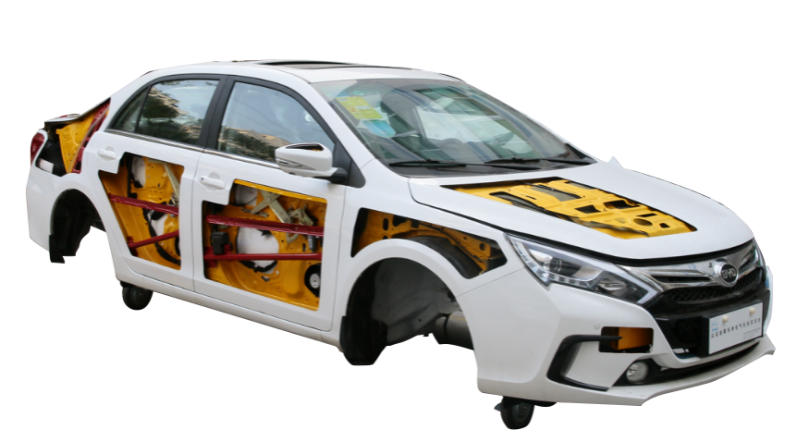 選用原裝 比亞迪秦混合動(dòng)力 原車(chē)車(chē)身和低壓控制實(shí)物系統(tǒng),完整的車(chē)身進(jìn)行部切處理(外露電器部件),剖面位置合理,能清楚展示內(nèi)部結(jié)構(gòu)。
